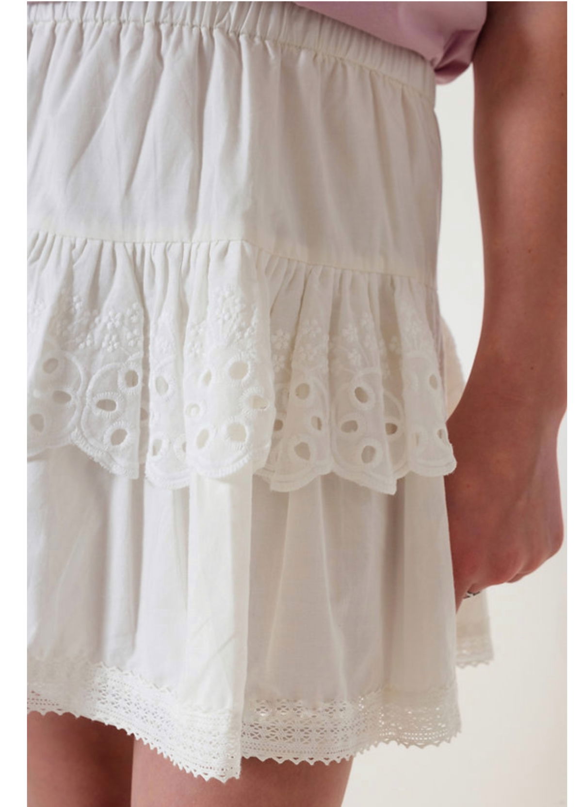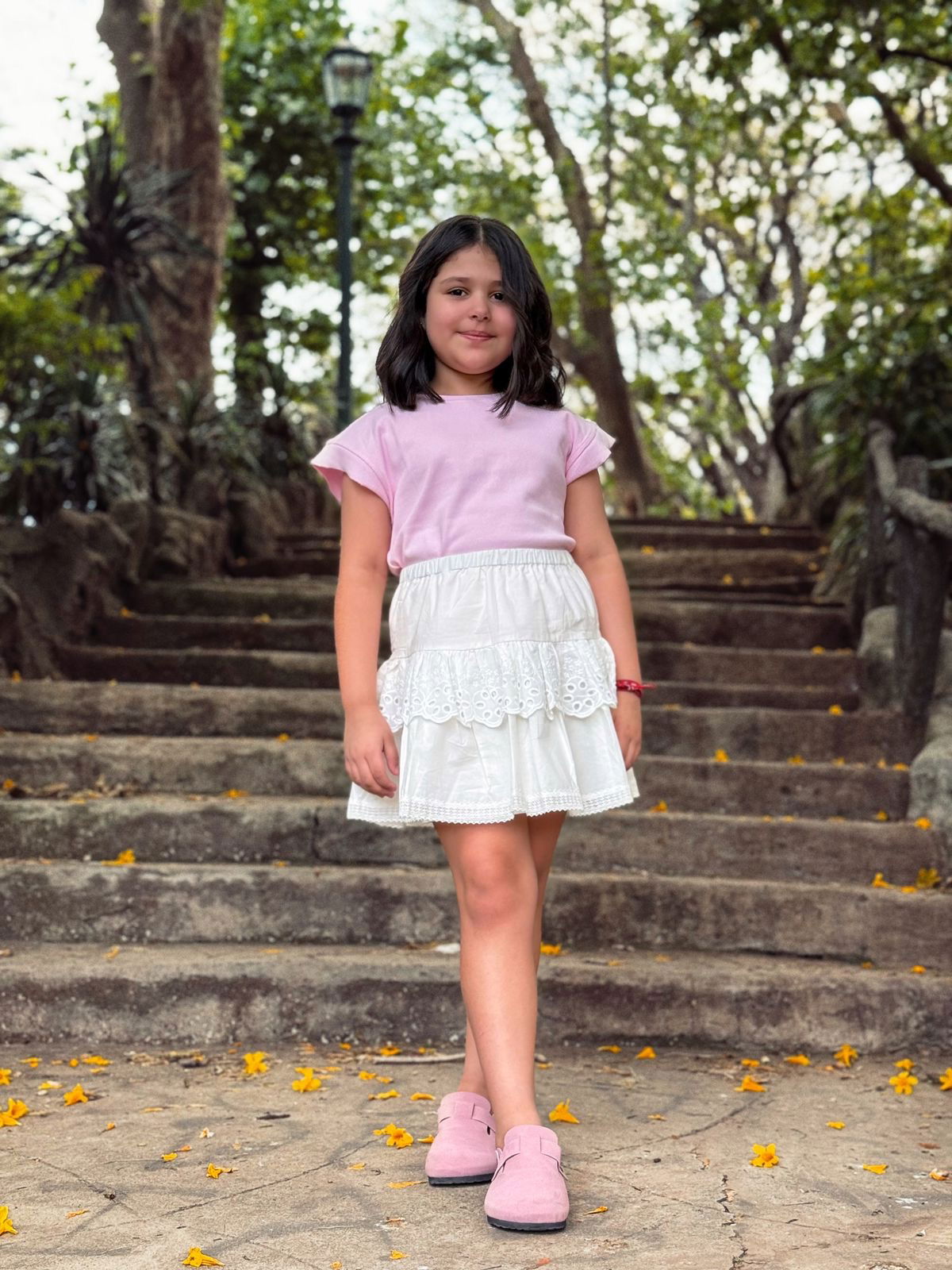Un clásico con encanto: confeccionada en poplin de algodón, con volados de broderie y delicado detalle de puntilla. Su interior está forrado para mayor comodidad. Suave, femenina y perfecta para acompañar todos los días de infancia 🎀