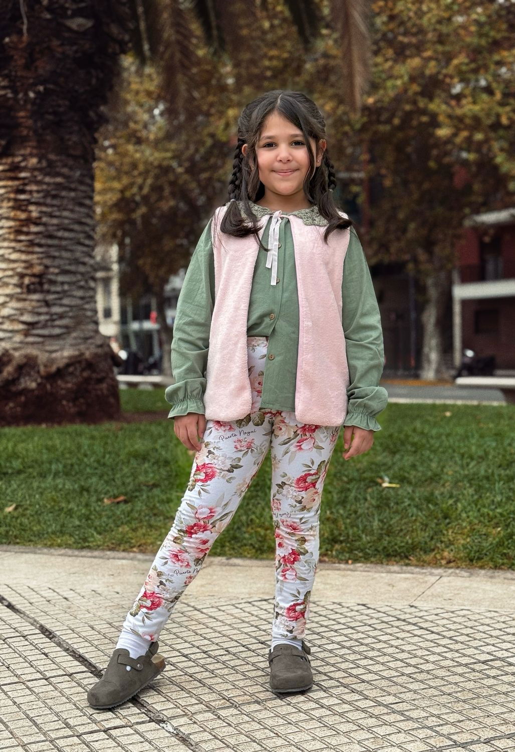 Calza frizada elastizada, antipilim estampado digital.